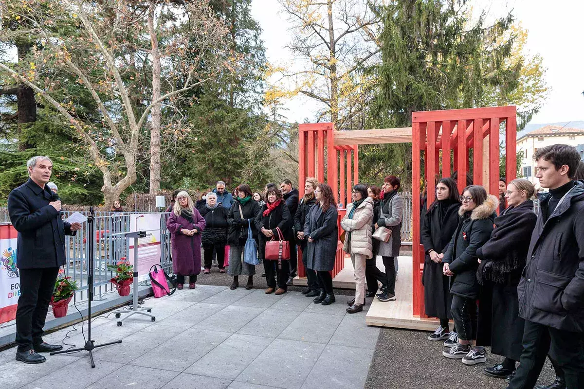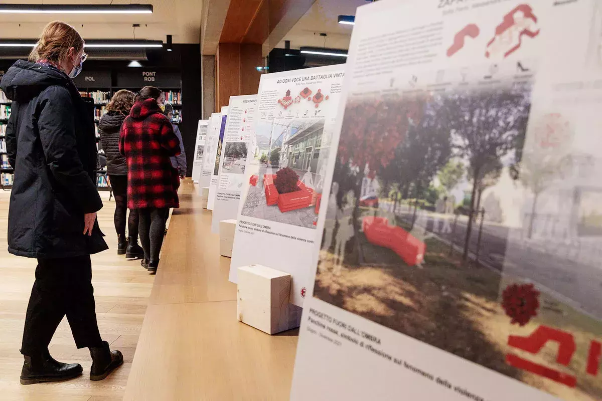 For every project, a call for proposals was launched for students of the Department of Civil, environmental and mechanical engineering, who were invited to design a red bench. The project is offered with a training course on violence against women and promotes a reflection on the social function of architecture and design.