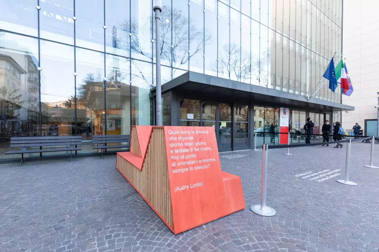 The unveiling of the red bench was part of the event organized by the Center for Mind/Brain Sciences (CIMeC) and the Department of Psychology and Cognitive Science on the report by the President of Stati Generali delle Donne, Isa Maggi, and the photographic exhibition "Slightly out of focus", by Filippo Tommasoli and Giuditta Vegro.