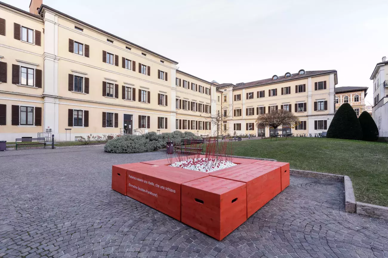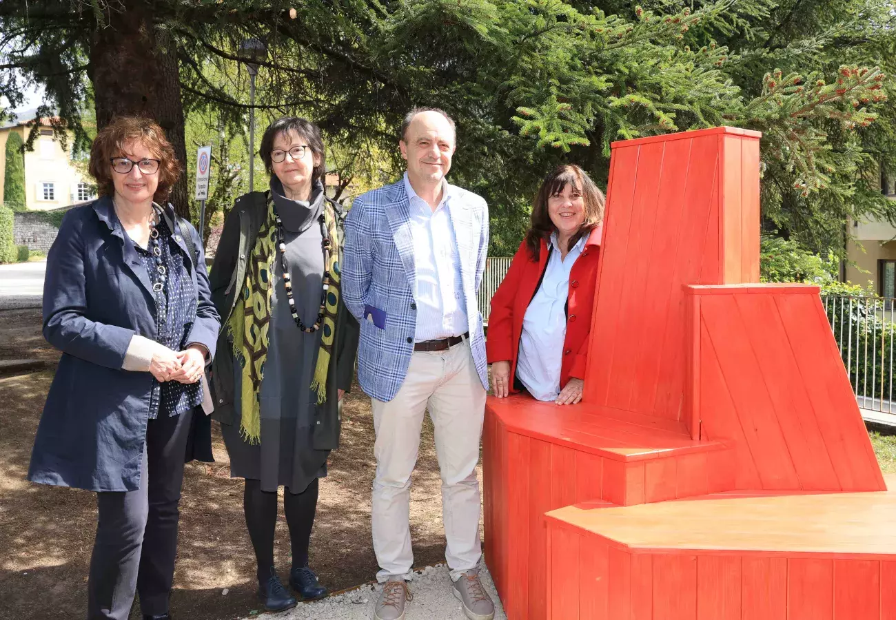 The inauguration of the red benches featured readings of texts on topics such as the "Matilda effect" and the invisibility of women scientists, both understood as forms of gender microviolence. These texts were written by students of the Faculty of Law and the Departments of Mathematics and Physics, under the guidance of Anna Simonati, Daniela Ascenzi, and Elisa Postinghel.